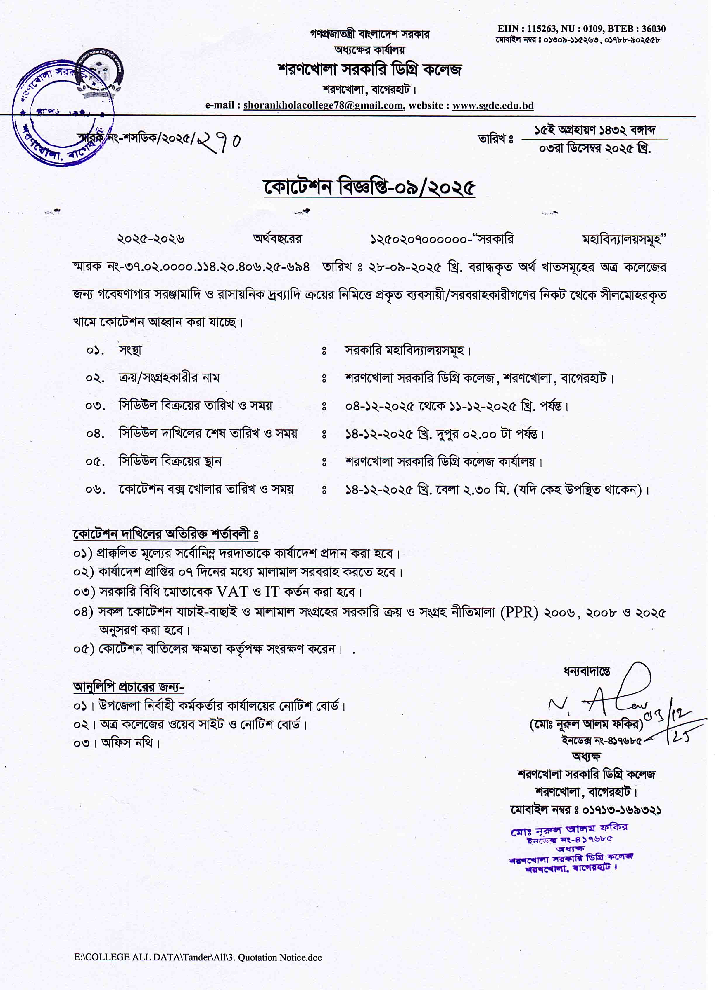 প্রতিষ্ঠাঃ১৯৭৮ খ্রিঃ।প্রতিষ্ঠাতাঃশামছুল আলম তালুকদারমুক্তিযোদ্ধা, ৯নং সেক্টরের সুন্দরবন সাব-সেক্টরের সেকেন্ড-ইন-কমান্ডসরকারিকরণঃ০৮-০৮-২০১৮ খ্রিঃ।সরকারিকরণের প্রধান পৃষ্ঠপোষকঃডাঃ মোঃ মোজাম্মেল হোসেন, সাবেক সংসদ সদস্য, বাগেরহাট-০৪।মৌজাঃআমড়াগাছিয়া, মৌজা-০৬, ওয়ার্ড নং-০৭, রাজৈর, ০২নং খোন্তাকাটা ইউনিয়ন।পোস্ট কোডঃ৯৩৩০।বিভাগ সংখ্যাঃ০৫ (কলা-৩, বি.বি.এ-২)উচ্চ মাধ্যমিকঃবিজ্ঞান, ব্যবসায় শিক্ষা, মানবিক, এইচ.এস.সি. (বি.এম), এইচ.এস.সি. ও বি.এ./বি.এস.এস. (উন্মুক্ত বিশ্ববিদ্যালয়)বিভাগসমূহঃইসলামের ইতিহাস ও সংস্কৃতি, রাষ্ট্রবিজ্ঞান, সমাজবিজ্ঞান, হিসাববিজ্ঞান ও ব্যবস্থাপনাপ্রদত্ত ডিগ্রি সমূহঃএইচ.এস.সি, বি.এ (পাস), বি.এস.এস (পাস), বি.বি.এস (পাস), বি.এ (সম্মান), বি.এস.এস (সম্মান), বি.বি.এস (সম্মান) এবং ডিগ্রি (উন্মুক্ত বিশ্ববিদ্যালয়)শিক্ষক সংখ্যাঃ৬২ জন (অধ্যক্ষ-১, সহকারি অধ্যাপক-০৮, সিনিয়র প্রভাষক-০৯, প্রভাষক-৩৮, প্রদর্শক-৪, গ্রন্থাগারিক-১ এবং শরীরচর্চা শিক্ষক-১)।কর্মচারীর সংখ্যাঃ২০ জন।বেসরকারি কর্মচারীঃ১০ জন।সহায়ক সুবিধাঃবিভাগীয় সেমিনার, গ্রন্থাগার, মুক্তিযুদ্ধ কর্ণার এবং অডিটরিয়াম।অন্যান্যঃপ্রশাসনিক ভবন-. . . Read More